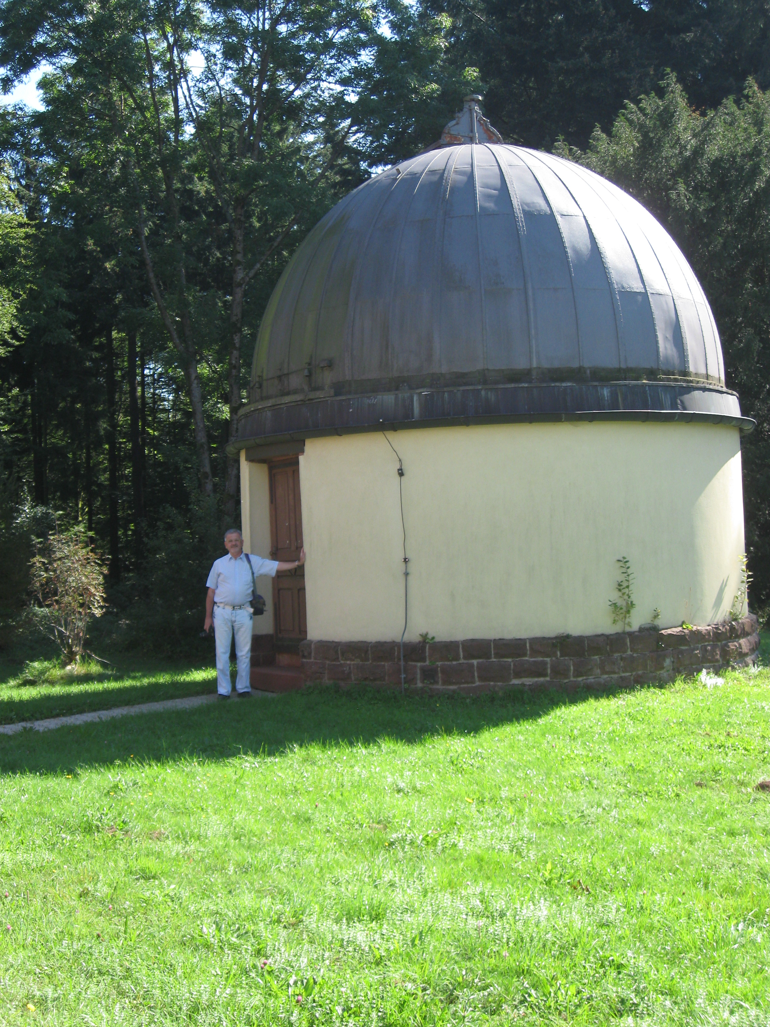 Nach Besichtigung des Botanischen Gartens fahren wir noch hoch auf den Königstuhl zur Bergstation der Bergbahn und zur Landessternwarte, wo die Tore geöffnet sind, so dass wir hineinspazieren und die eindrucksvollen Kuppelbauten betrachten können, in denen sich die verschiedensten Teleskope befinden. Zielstrebig gehe ich in die hinterste Ecke zum kleinsten Instrument, dem 8-Zöller, welches Mitte der 70er-Jahre meinem Freund Jörg Dubiel und mir zur „privaten Forschungsarbeit“ zur Verfügung stand, heute aber verschlossen ist. Wir haben damals einige experimentelle Arbeiten auf dem Gebiet der Astrofotografie bzw. Planetenfotografie durchgeführt, die es damals sogar in die Fachzeitschrift „Sterne und Weltraum“ geschafft haben, heutzutage aber nur belächelt würden. Jörg war der Physiker, ich der Chemiker im Team. Planetenfotografie ist sehr schwierig, vor allem unter terrestrischen Bedingungen aus der licht- und dunstverschmutzten Rheinebene heraus. Mit chemischen Methoden haben wir die flauen Ergebnisse auf den damaligen Spezial-Filmen noch nachträglich verbessert. Dennoch ist der Informationsgewinn mit den digitalen Methoden heute, 40 Jahre später, eklatant, wie die Vergleichs-Beispiele von Jupiter- und Saturn-Aufnahmen von damals und heute zeigen (Jupiter 1976/2017, Saturn 1977/2017).
