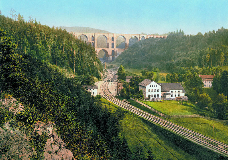 In jenem Jahr waren wir während des Mauerbaus auch in der DDR, und die Eltern und Grosseltern (Opa lebte da noch) recht besorgt, ob wir überhaupt wieder zurück nach Mannheim kommen würden. Doch zurück zur „normalen“ Reise in die DDR, die nach der endlosen Kontrolle in Gutenfürst über die hügelige Landschaft des Vogtlandes weiter nach Plauen ging, wo dann auch DDR-Bürger in den Zug einsteigen konnten. Wir hatten dann nur noch eine Station: über die grossen Vogtlandbrücken aus Ziegelsteinen nach Reichenbach. Die Elstertalbrücke (68m hoch, 279m lang) und die Göltzschtalbrücke (78m hoch, 574m lang) sind die beiden grössten Ziegelsteinbrücken der Welt und in der Bauweise römischer Aquädukte errichtet.